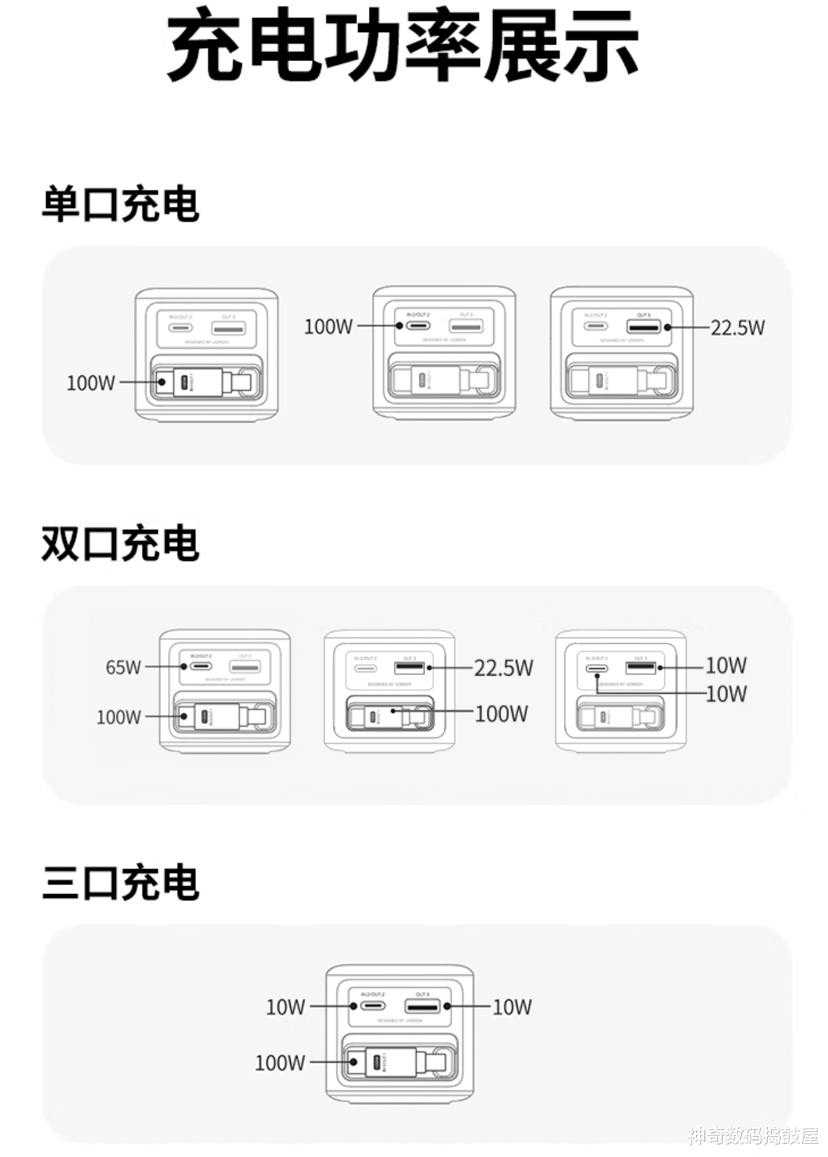 2、绿联100W伸缩线四口充电器