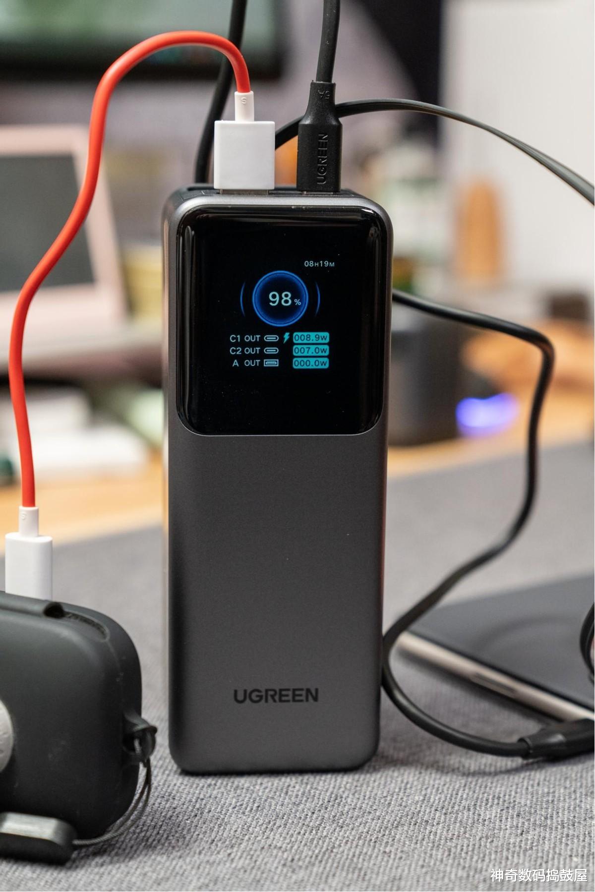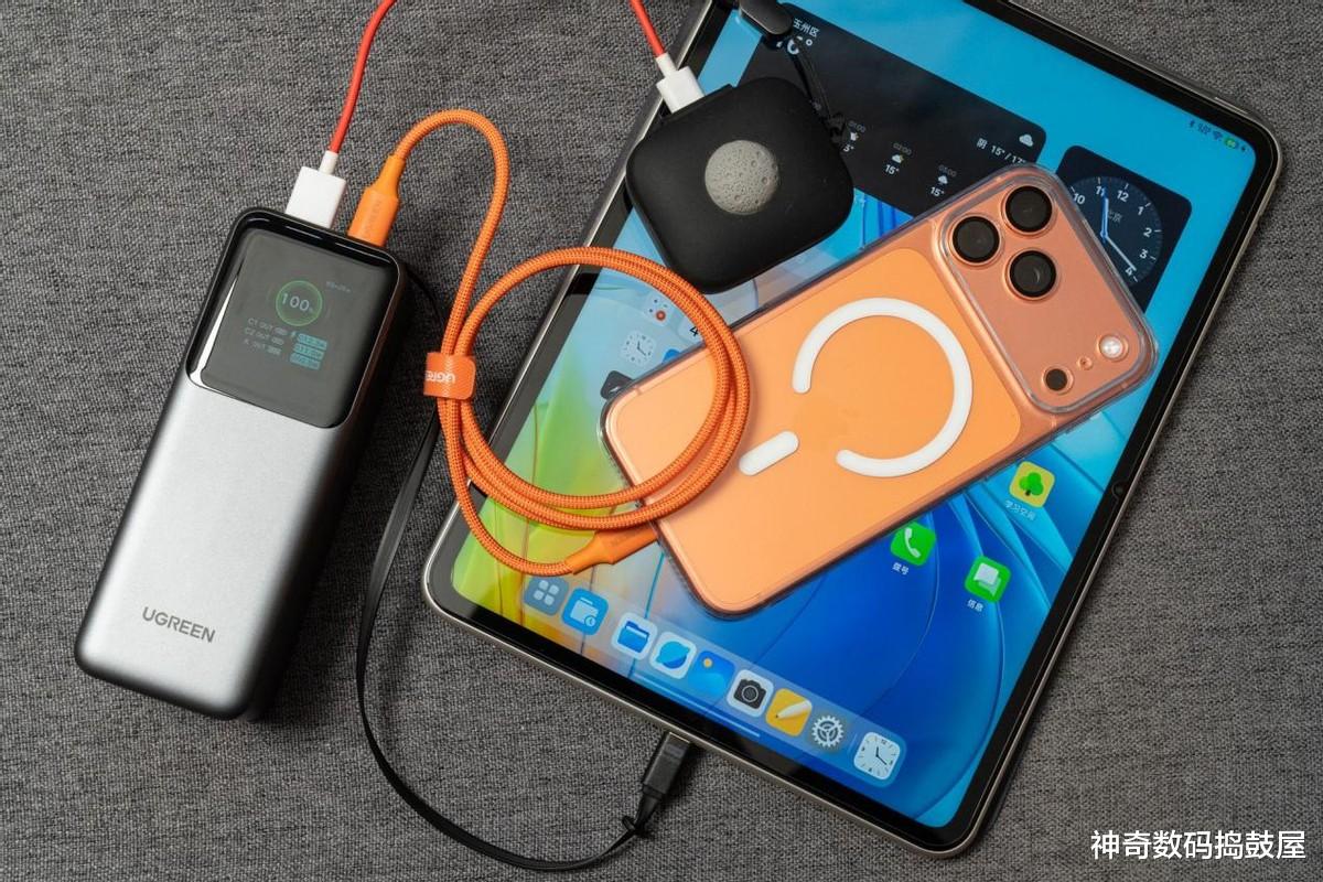 说出来有点夸张,但自从包里揣了绿联这颗「能量巨无霸」165W伸缩线移动电源,我连咖啡馆电源焦虑症都治好了!开视频会议开到笔记本红电量警告?啪嗒拉出自带伸缩线怼上C口——165W狂暴输出直接让它秒回满血状态,连旁边同事的iPad Pro也能一起喂饱,开会救场简直帅到没朋友!