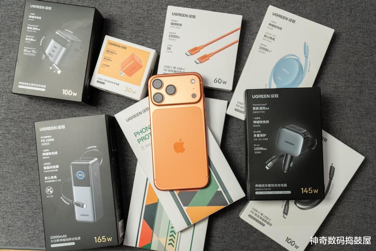 如果你去年刚好囤了45W的充电器,恭喜捡到宝啦!今年用在iPhone 17上功率照样顶得住,完全够使!我自己现在用的绿联新出的这款星宇橙色30W氮化镓充电头,颜色亮眼得很,关键它里头塞了PD认证芯片,还过了苹果MFi和PD双重认证的官方检测关,能自动智能适配快充协议,护着电池稳稳快充还不弹窗——这实力派配这神仙颜值,闭眼入不踩雷!