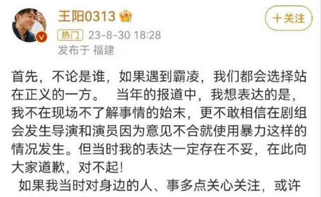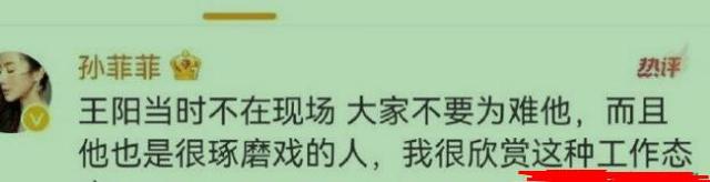 王阳并没有为孙菲菲发声,反而表示当时不在现场,不知道情况,并且暗戳戳的表示导演的人很好。