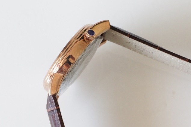 表带则是棕色的头层牛皮表带,预留的8个针孔可以适应我们国人所有的手腕大小。