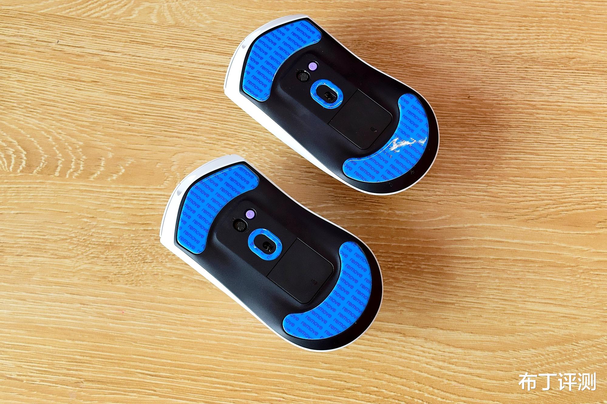 雷柏VT7系列的底部设计保持一致,上下两端是特氟龙“冰感”电竞大脚贴,能够有效保持鼠标的顺滑度和操控稳定性,再加上附赠的备用脚贴,也足够使用上一阵时间了。