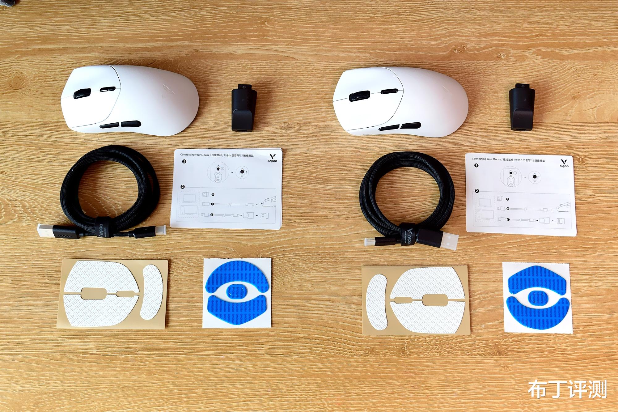 配件方面,雷柏VT7系列还是相当有诚意的,不仅配备了USB转接器、8K带屏蔽高速数据线,而且还配备了电竞脚垫、侧裙防滑贴、按键防滑贴。特别是其中的8K高速数据线,采用了伞绳材质,又软又轻便,搭配使用几乎感觉不到拖拽感,再加上还采用了镀金USB接口,能保持传输稳定。