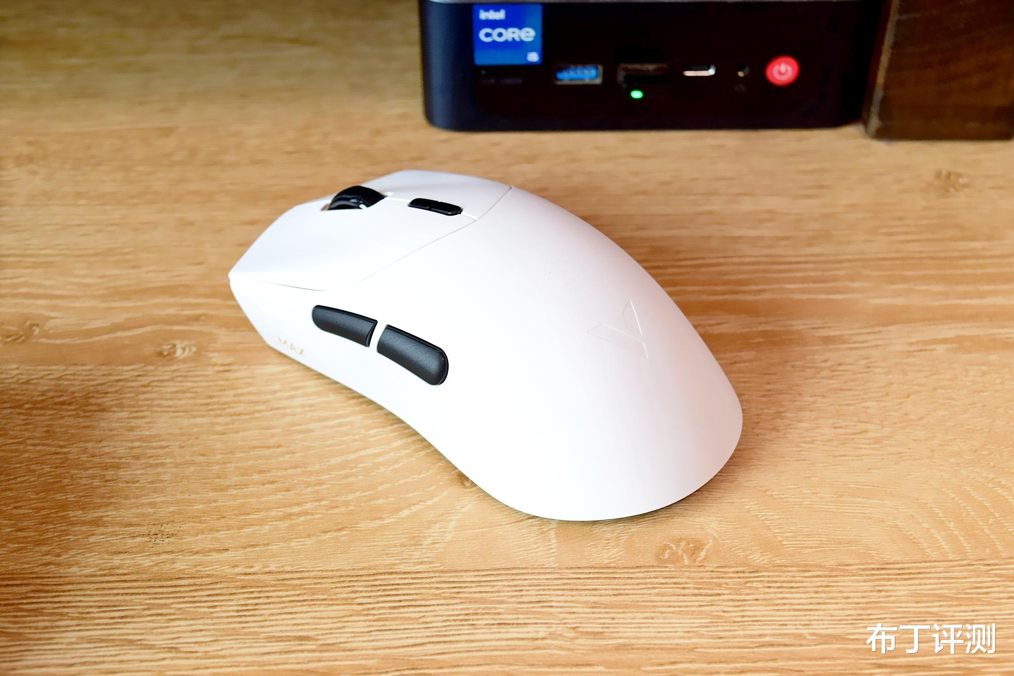外观方面,雷柏VT7和VT7 MAX完全一致,只能通过侧面金色的“MAX”标识来区分。鼠标采用极简设计理念,虽然体积不小,不过由于采用了轻量化机身,整机重量只有约53g,拿在手中能明显感到很轻便。