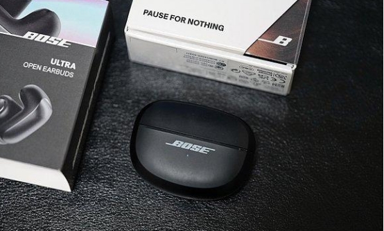 Bose Ultra采用独具辨识度的耳夹式结构,边缘线条圆润顺滑,金属磨砂质感极具高级感,佩戴起来更像精致配饰。它通过超柔软硅胶涂层的柔性带连接发声单元与电池仓,能够自然贴合不同耳型,即便戴眼镜或帽子也不会相互干扰。耳机的重量控制出色,佩戴时间长也不会产生明显压耳感,运动过程中也能保持稳定。