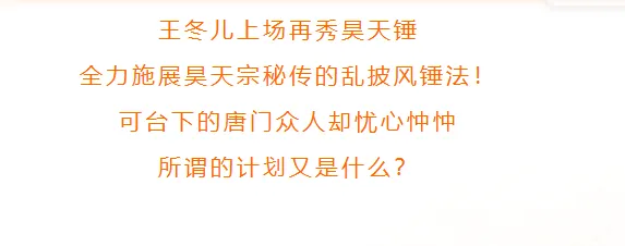 《绝世唐门》的82集先导图和预告都已经更新,这应该是第二次青年魂师大赛,最受关注的一集。唐三对上了史莱克,王冬儿和王秋儿两人首次正面对决,决定一战定胜负。冬儿还换上了昊天锤的新衣服,眉眼之间很有父亲唐三的风范。