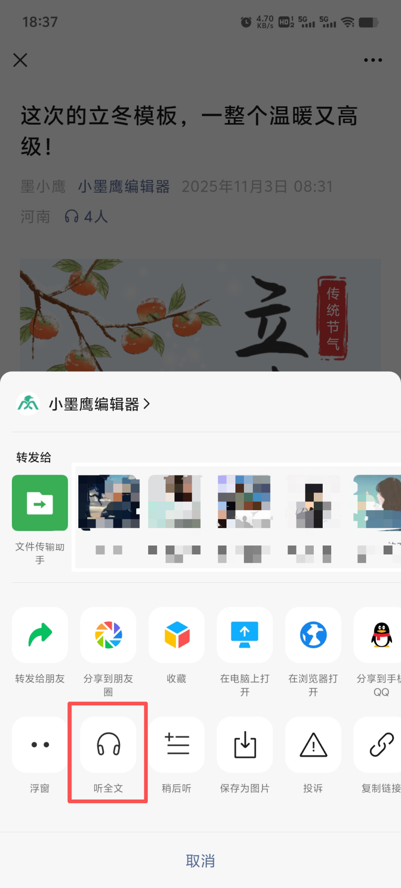 开启“听全文”后,你可以
