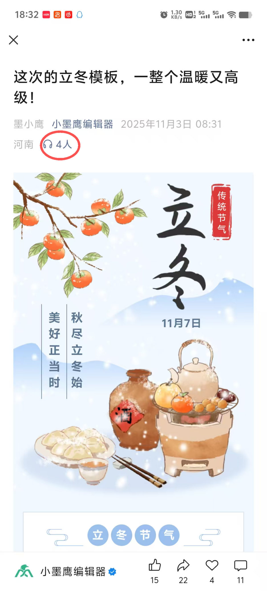 作为公众号的运营者,我们不需要特殊的设置,只要用户使用【听全文】的功能听过我们的文章,后面其他用户打开文章,就会显示几个人听过这个文章。