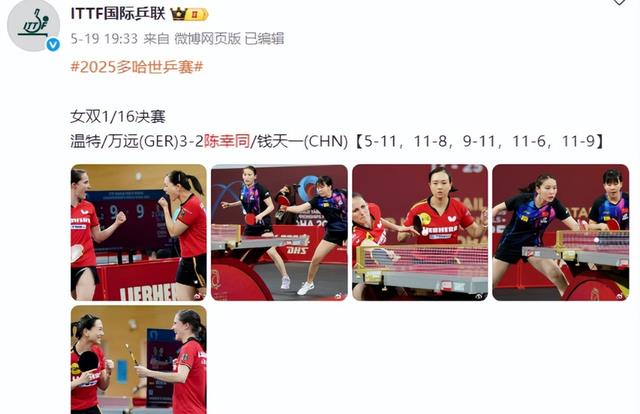 这一届的多哈世乒赛,真是意外状况不断,先是王楚钦球拍被损坏,再到陈幸同钱天一这对女双组合,在16强竞争中爆冷出局。