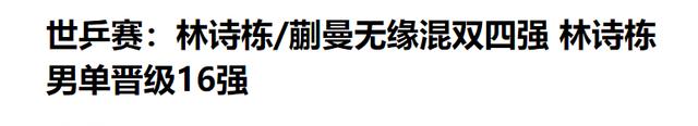 好在他和林诗栋的男双项目成功晋级八强,让观众们不至于心里那么堵。