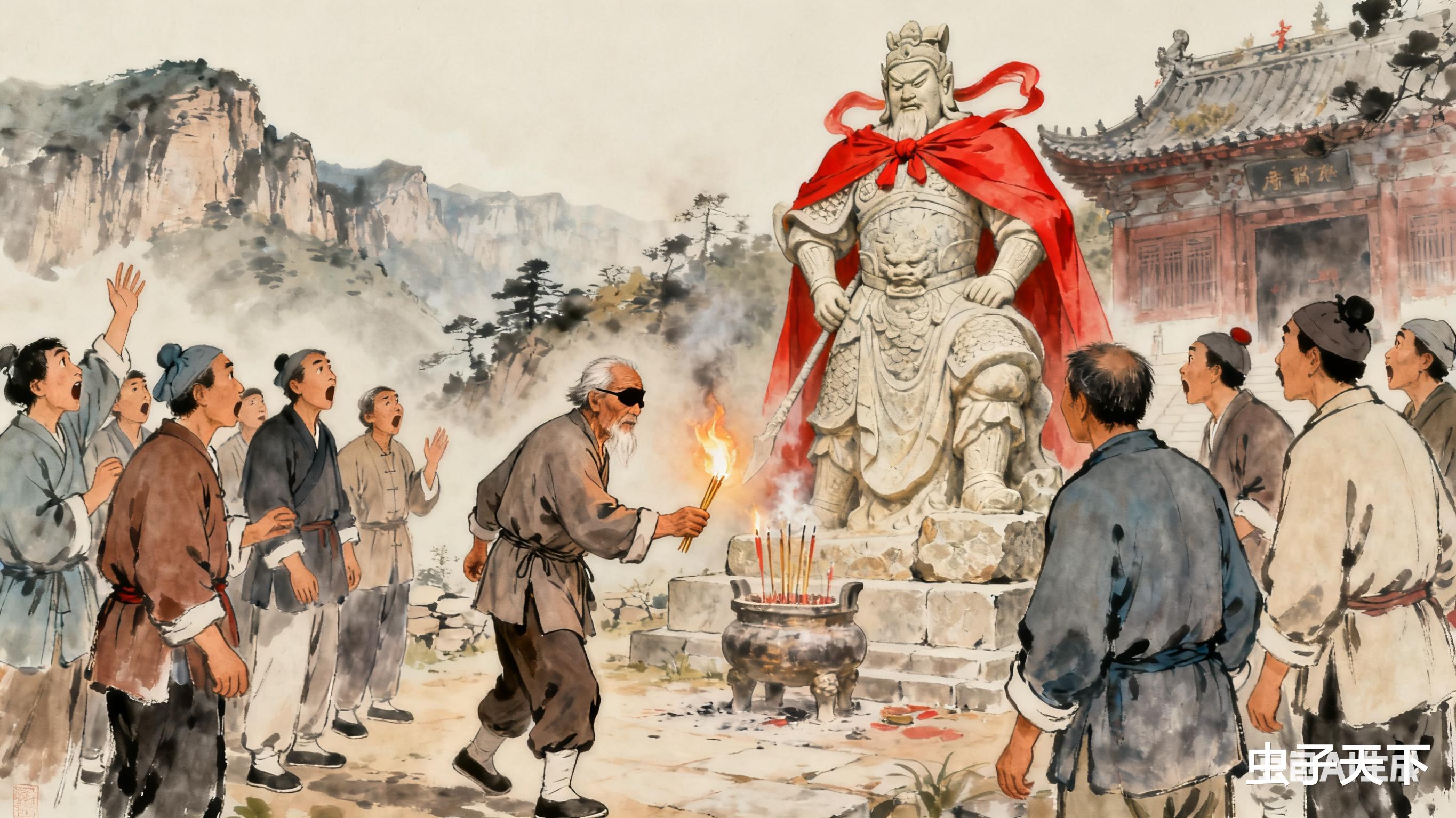 老汉嘿嘿笑:“我虽瞎,可心里亮堂,二郎爷是救苦救难的神,眉眼间得有慈悲劲儿。”