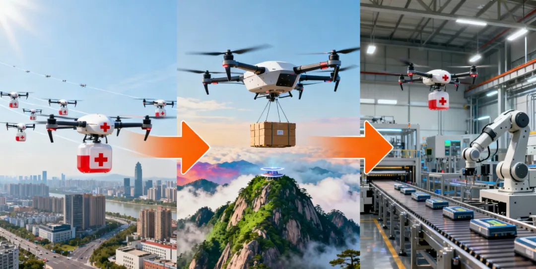 连生活都要被改写:以后暴雨天打不到车?约个“空中专车”,价格可能只是地面高端专车的2倍;家里老人急用药?无人机15分钟就能从医院送到家,合肥已经开始这么干了。