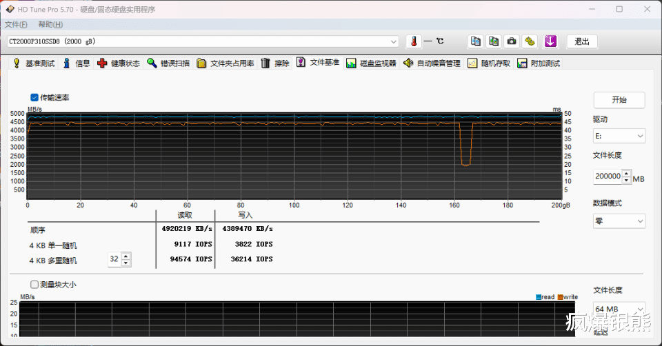 硬盘我用的是英睿达的P310 2T版本,无缓存设计,接口为NVME,传输模式Pcie4.0*4,标准NVME1.4,速度上比不上官方成绩,仅供大家参考。