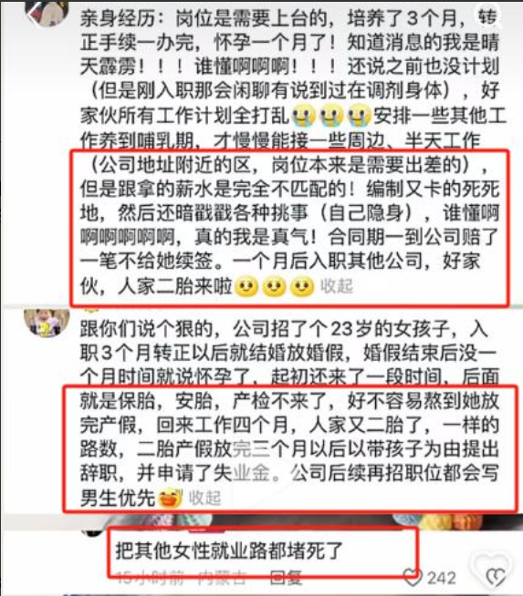 职场性别歧视:个别女性入职后立即怀孕,导致企业普遍对育龄女性求职者设限。