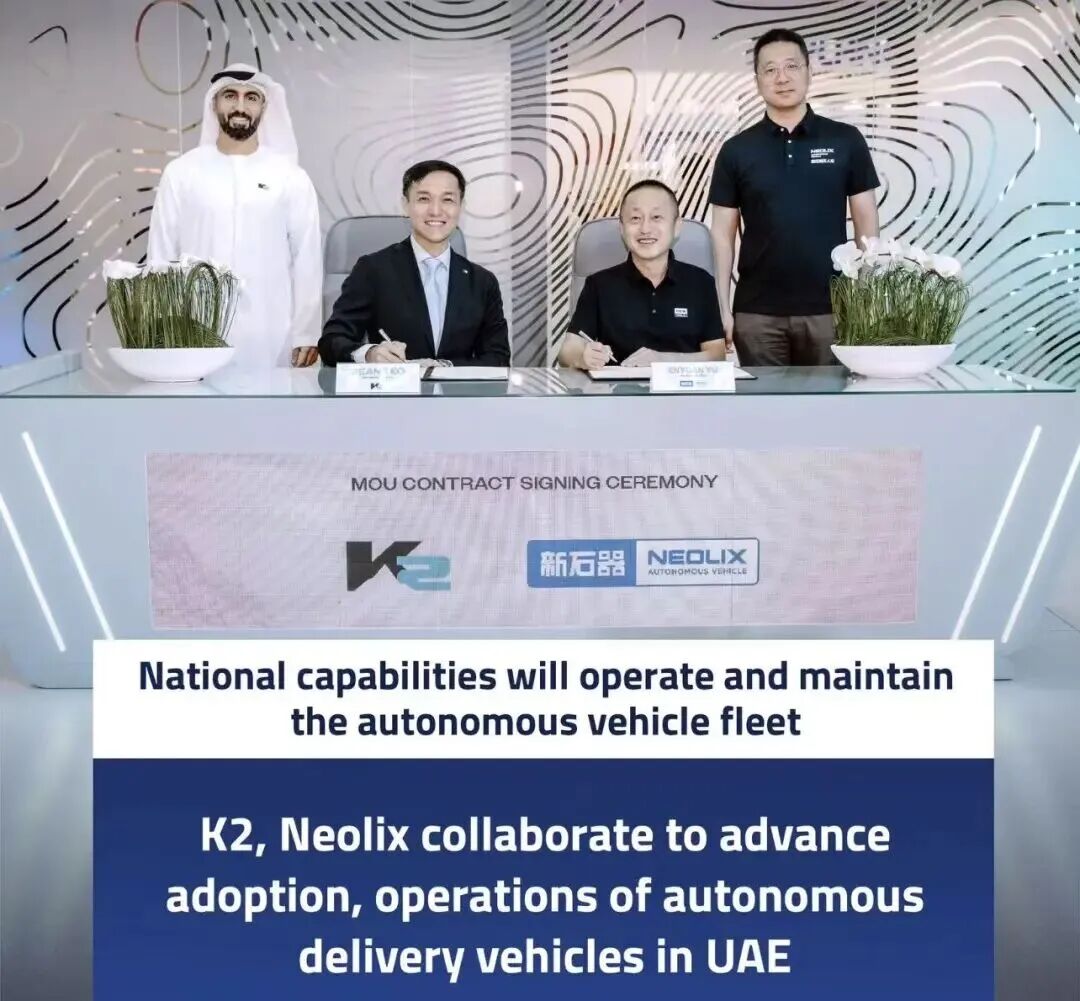 余恩源:我们上周已经完成了签约。上周我们去了中东的CES(科技展览会),在上面和K2(阿布扎比政府旗下一家专注于自主系统和AI技术的企业),K2是阿联酋一家国企,它是阿联酋科技部底下负责未来无人化运作平台的企业,所以它会聚集阿联酋各方面的资源与我们公司来对接,负责这些机器人和无人驾驶在阿联酋的落地运营。