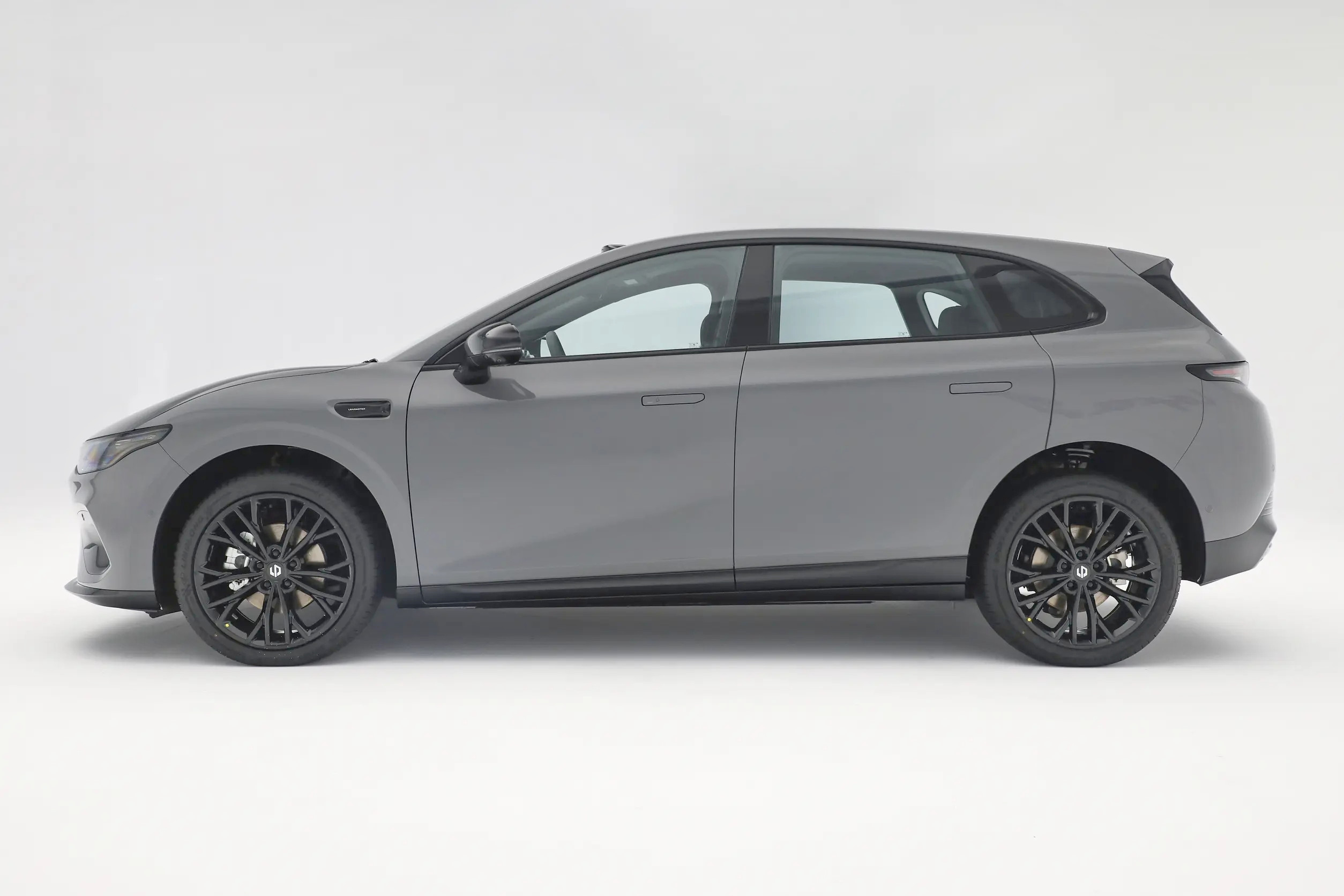 前脸造型:半封闭式前脸布局+三段式家族化LED光源前大灯组(支持自适应远近光自动切换)、澎湃张力前机盖、前包围底部熏黑装饰件+AGS主动进气格栅车身轮廓:1880mm宽体+两厢车造型布局、纯平侧窗+B柱玻璃饰板+车身多处熏黑装饰件、前后隐藏式门把手+四门无框车门、电动调节外后视镜+19英寸掠翼运动轮毂。车尾布局:贯穿式LED光源尾灯组、电动后尾门+扰流板+高位刹车灯、后包围底部大面积熏黑装饰件(含扩散器装置)。