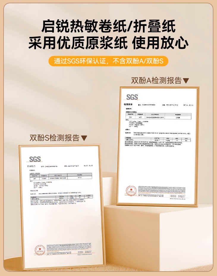 最戳我的是它的无墨打印技术,采用热敏技术通过加热打印头成像,完全不用灌墨水。以前换墨盒经常弄脏水,手上的墨渍洗半天。现在装卷热敏纸就能用,连我家 5岁娃都能自己操作。更关键的是启锐配套的热敏纸安全感拉满,我特意查过,它的专用热敏纸通过了专业检测,完全不含双酚 A和双酚S,这俩物质可是被反复提醒要远离儿童的隐患成分。给娃印绘本、作业时,就算孩子不小心舔到纸张也不怕,用着特别踏实。