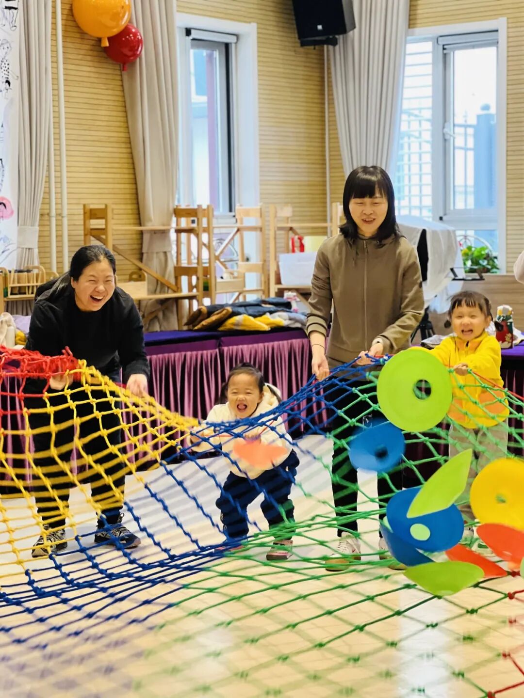 小手紧抓彩虹网边缘,随“海浪”欢笑摇摆