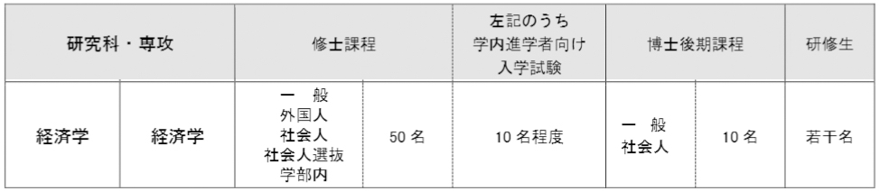 经济学研究科修士课程募集人数50名经济学研究科·出愿时间
