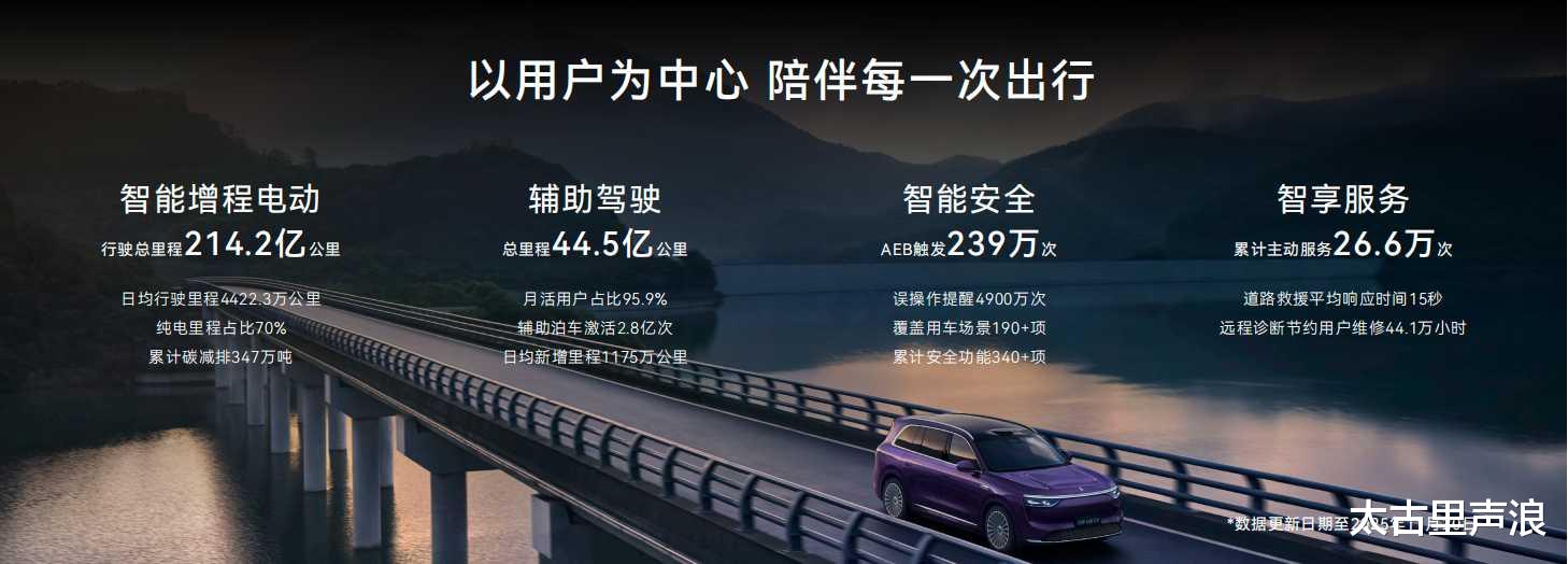 值得一提的是,问界增程系列车型累计总里程超214亿公里,其中纯电行驶里程占比达70%,辅助驾驶总里程已超过44.5亿公里,辅助泊车激活次数达到2.8亿次。