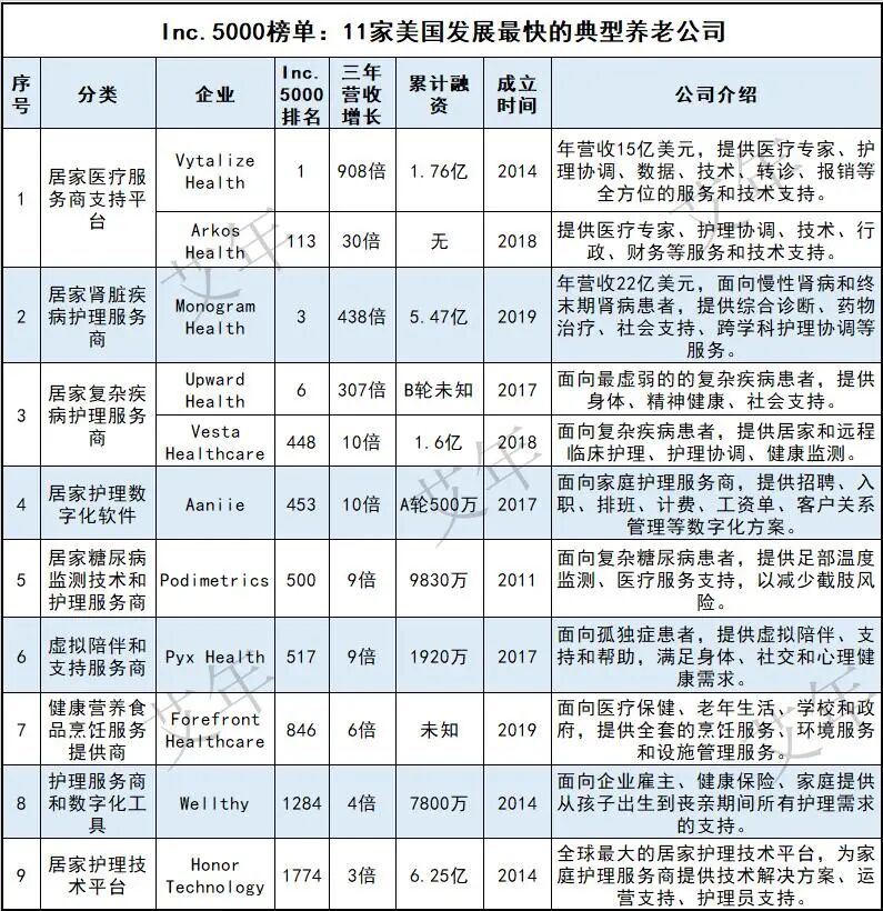 Vytalize Health的崛起,就在于其开创性地赋能初级保健医生,通过提供一站式价值医疗技术与服务,大幅度降低了繁琐的行政和财务,让医生重新专注于老年患者健康,并以此成为连接保险付款人和护理服务商的桥梁。这家2014年成立的银发科技巨头,因2023年营收高达15亿美元,三年间实现超900倍的惊人增长,荣登2024年Inc.5000榜首,成为美国发展最快的典型养老公司。