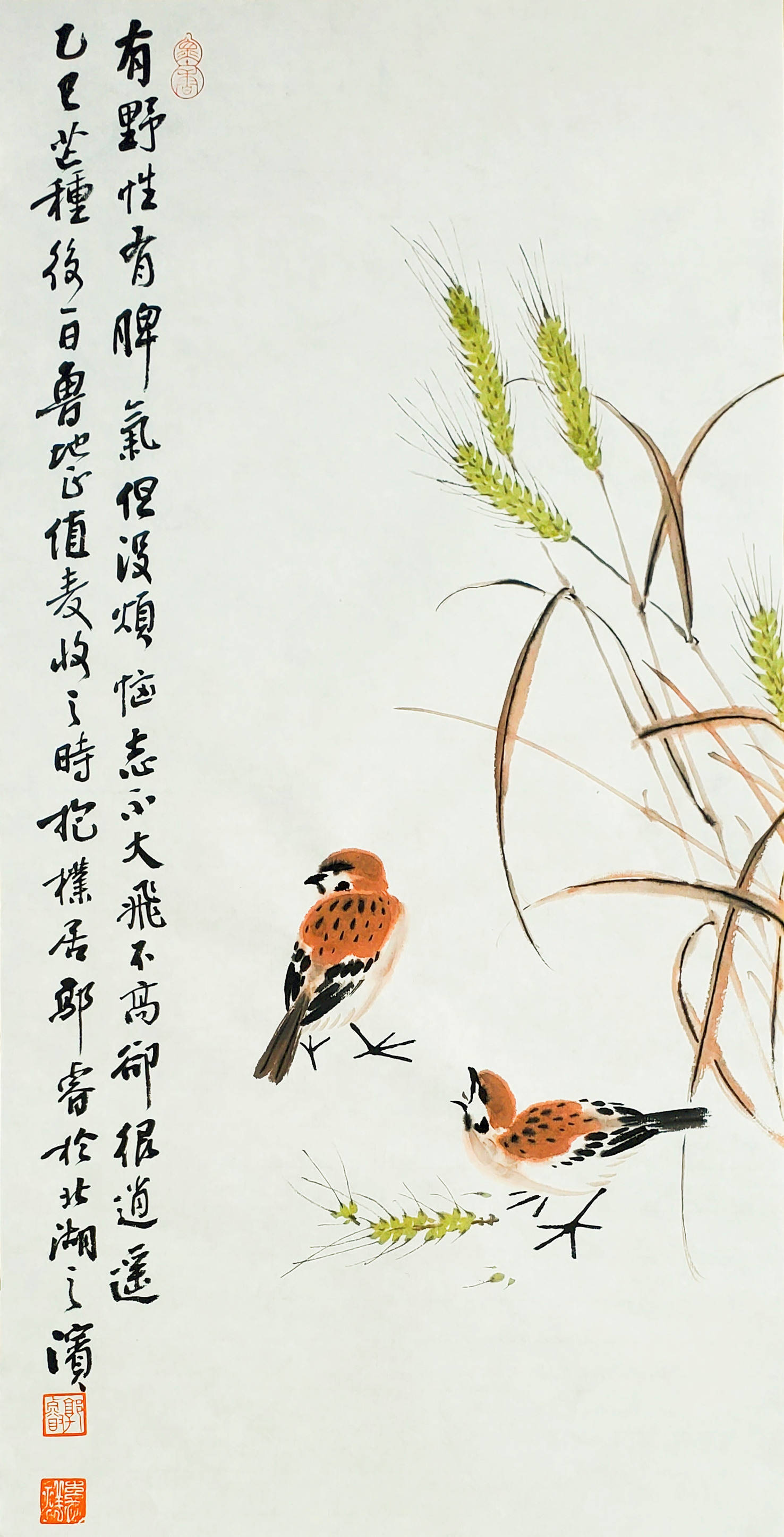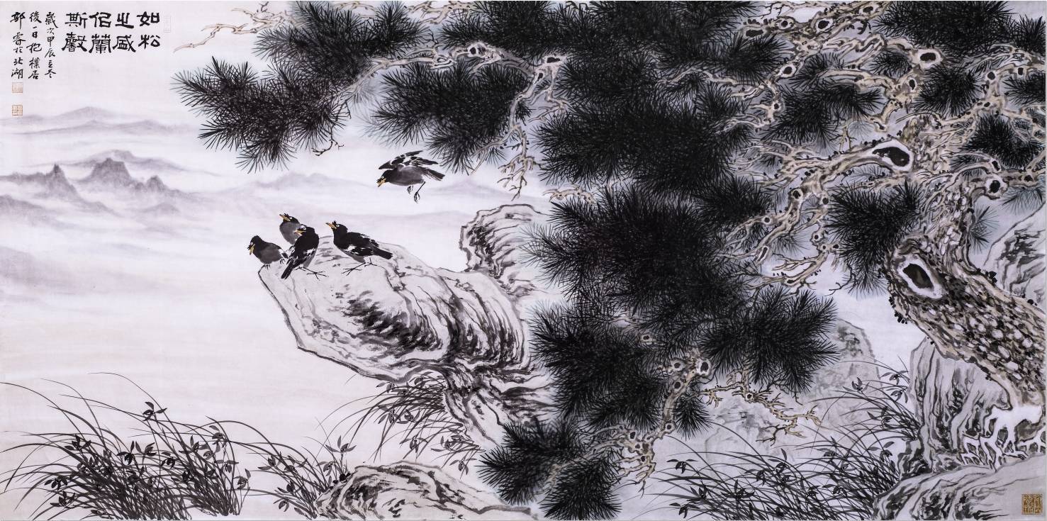 郭睿是中国当代花鸟画领域的实力派画家,其艺术创作融合传统笔墨精神与个人人文情怀,形成了独特的艺术风格,意境营造作品常以诗意化的自然意象构建宁静深远的画境,如《晨曲》《岁寒清韵》等通过鸟雀、草木传递和谐生机,体现儒家“天人合一”的哲学思想,其线条饱满曲折,墨色浓淡相宜,既有宋代院体的严谨法度(如《秋声图》《花香袭人》),又融入元代黄公望式的抒情长线技法(如《湖上清风图》)书法用笔强调“以书入画”,线条兼具力度与韵律,通过书法功底支撑画面的骨气与神韵,避免当代国画“不耐看”的弊病设色讲究内涵丰富而不失清雅,小幅作品隽永脱俗,大幅作品兼具装饰性与生活情趣,构图常以稚拙古朴之趣传递自然生机