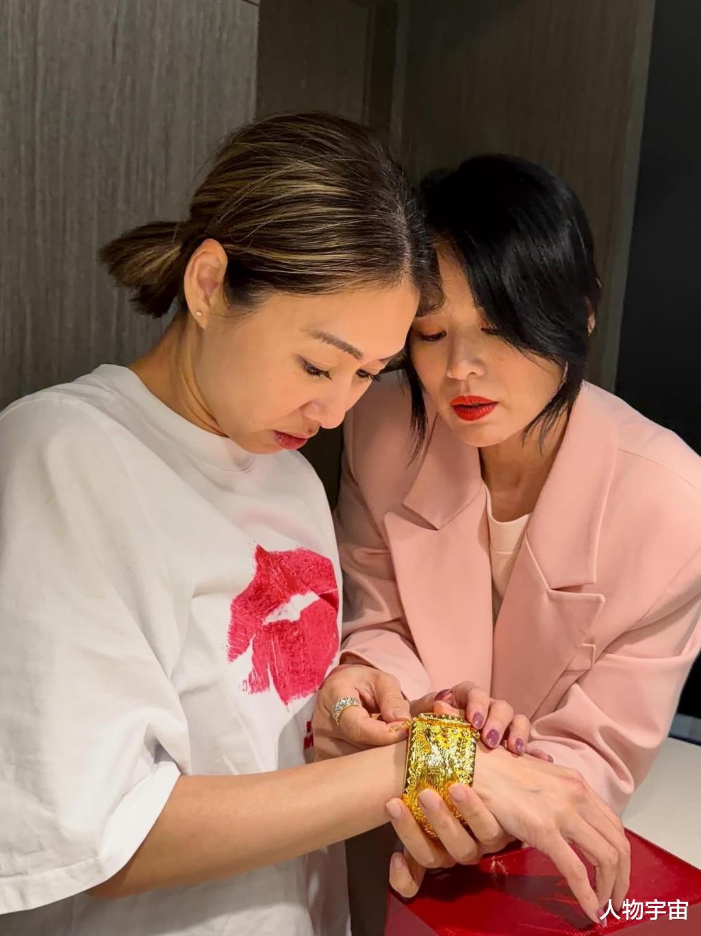 从她本人在社交平台分享的视频及照片可见,她这次返港相约了好闺蜜胡杏儿李乘德夫妇、单立文胡蓓蔚夫妇、陈山聪及Apple夫妇、袁伟豪张宝儿夫妇。其中,一向与胡定欣交往甚密的胡杏儿还送给她一只巨型龙凤手镯,并于现场亲手为好姐妹戴上。而收到这份意义非凡的大礼,胡定欣也是笑得合不拢嘴,更感动得与胡杏儿拥抱、拍照留念。