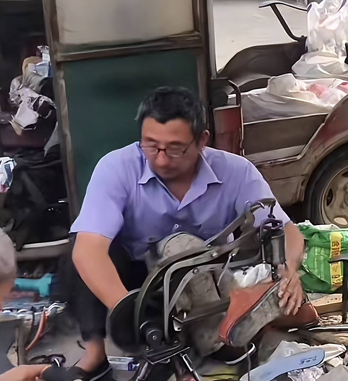 男子名叫刘强,是河南驻马店一位普通的修鞋匠。