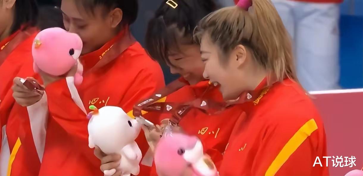 也有几位球员展现出了不满的神态,比如像王思雨吐着舌头摇头,高颂脸上有些不甘心。可大多数球员还是举着手笑着登上领奖台,韩旭和刘禹彤拿着玩偶碰撞逗乐,周围的人也被这搞怪开的画面逗笑。李梦同样拿着银牌和玩偶与队友分享,笑得也非常开心,她们还一块对着镜头展现自己的玩偶和金牌,没有被失利的阴霾所干扰。