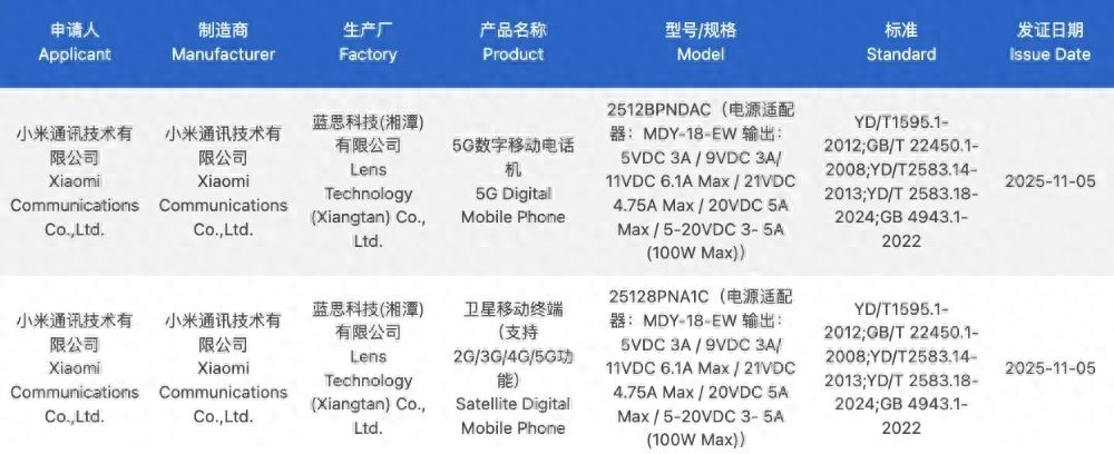 近日,有两款型号为 2512BPNDAC、25128PNA1C 的小米新机通过 3C 认证,博主@数码闲聊站 确认为小米 17 Ultra。