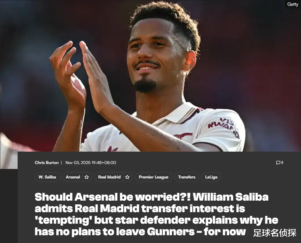 在被问到皇马今夏的兴趣时,萨利巴说:“当然,像这样的俱乐部对你感兴趣时,确实真的很有吸引力……但我在考虑任何其他事情之前首先想要和阿森纳一起赢得冠军。”