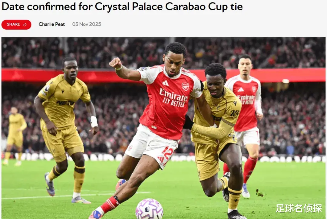 官方:阿森纳宣布主场对水晶宫的联赛杯四分之一决赛被安排在了12月23日周二进行。