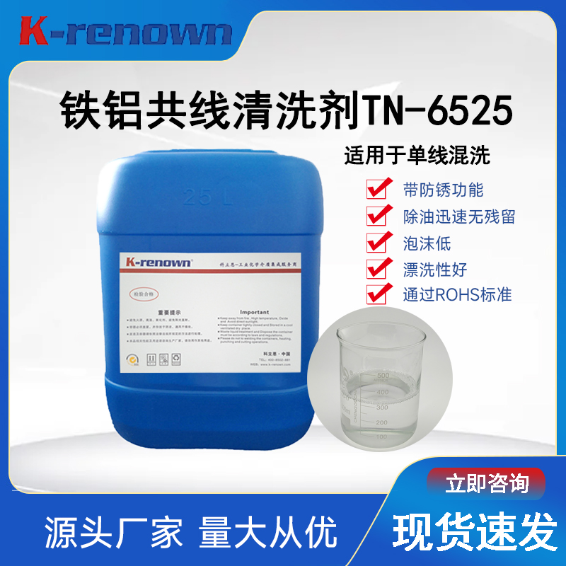 对于铁铝共线加工的复杂场景,铁铝共线清洗剂TN6525提供了兼容性解决方案。这款产品的差异化价值体现在多材质兼容能力——对黑色金属具备3-7天防锈保护,对铝材则具有缓蚀作用防止变色。低泡配方设计使其特别适配喷淋工艺,某机械加工企业采用该产品后,产线通用性提升40%,清洗剂种类从5种减少至2种,明显降低了管理成本。