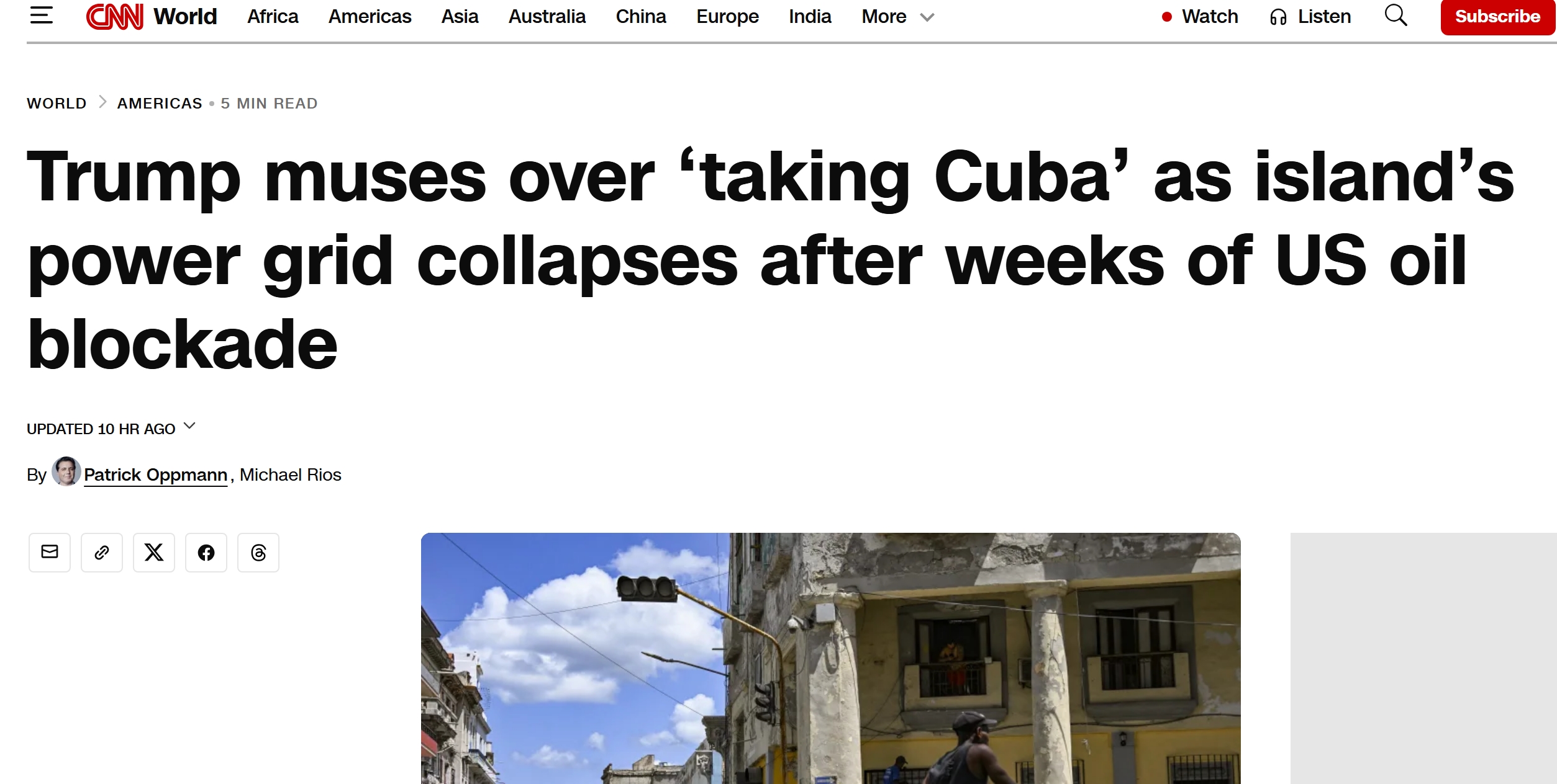 CNN在2026年3月16日的报道中提到(见上图),古巴电网已经出现严重崩溃风险,部分地区每天停电时间长达数小时甚至更久,工业生产、医疗系统以及居民生活均受到冲击。一些地区的医院不得不依靠应急发电机维持基本运转,而这些发电机本身也依赖柴油,一旦燃料耗尽,后果不堪设想。