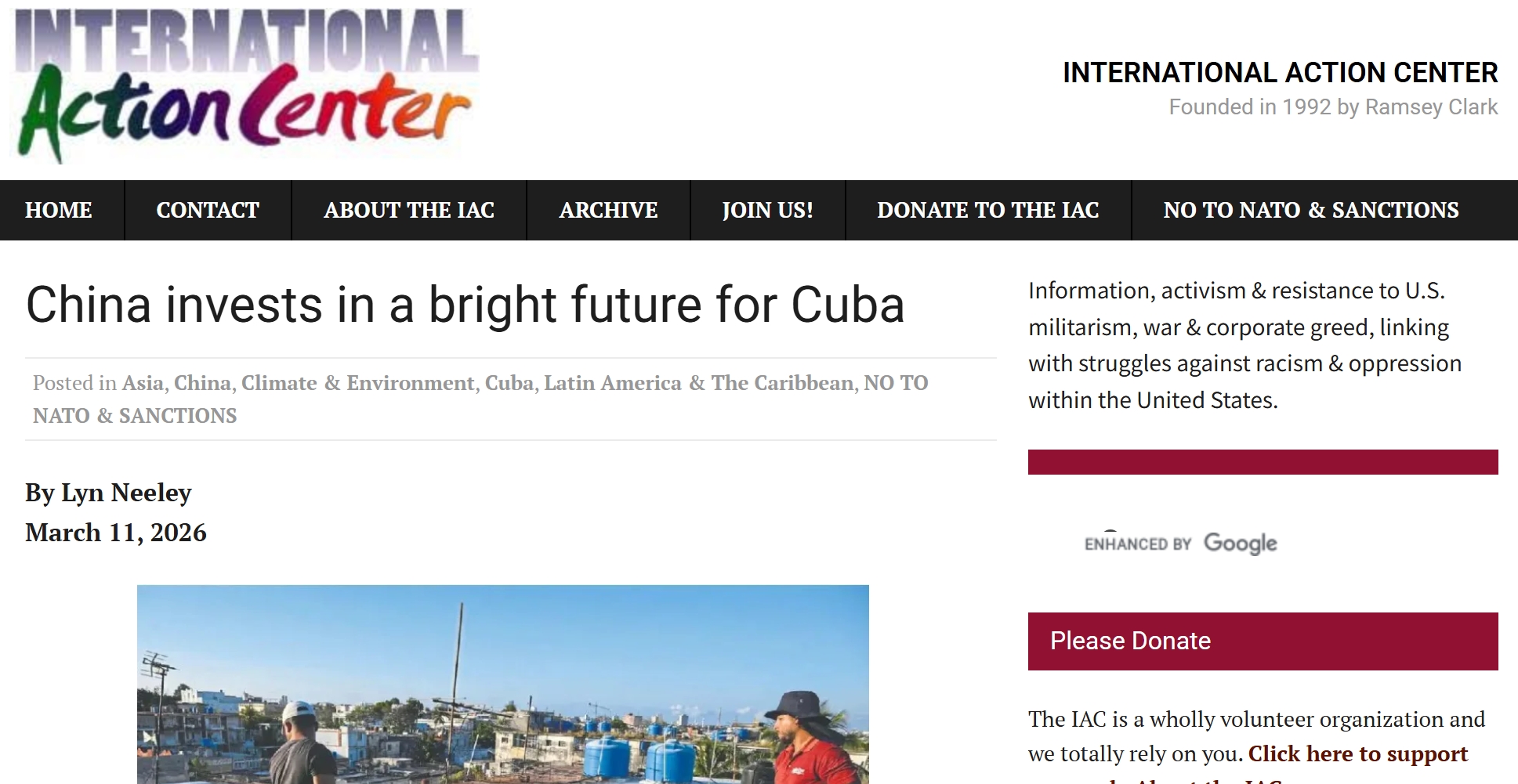 对此,甚至连美国的所谓人权组织“国际行动中心”都不得不在今年称赞道,“中国为古巴投资了光明的未来”(见下图)。