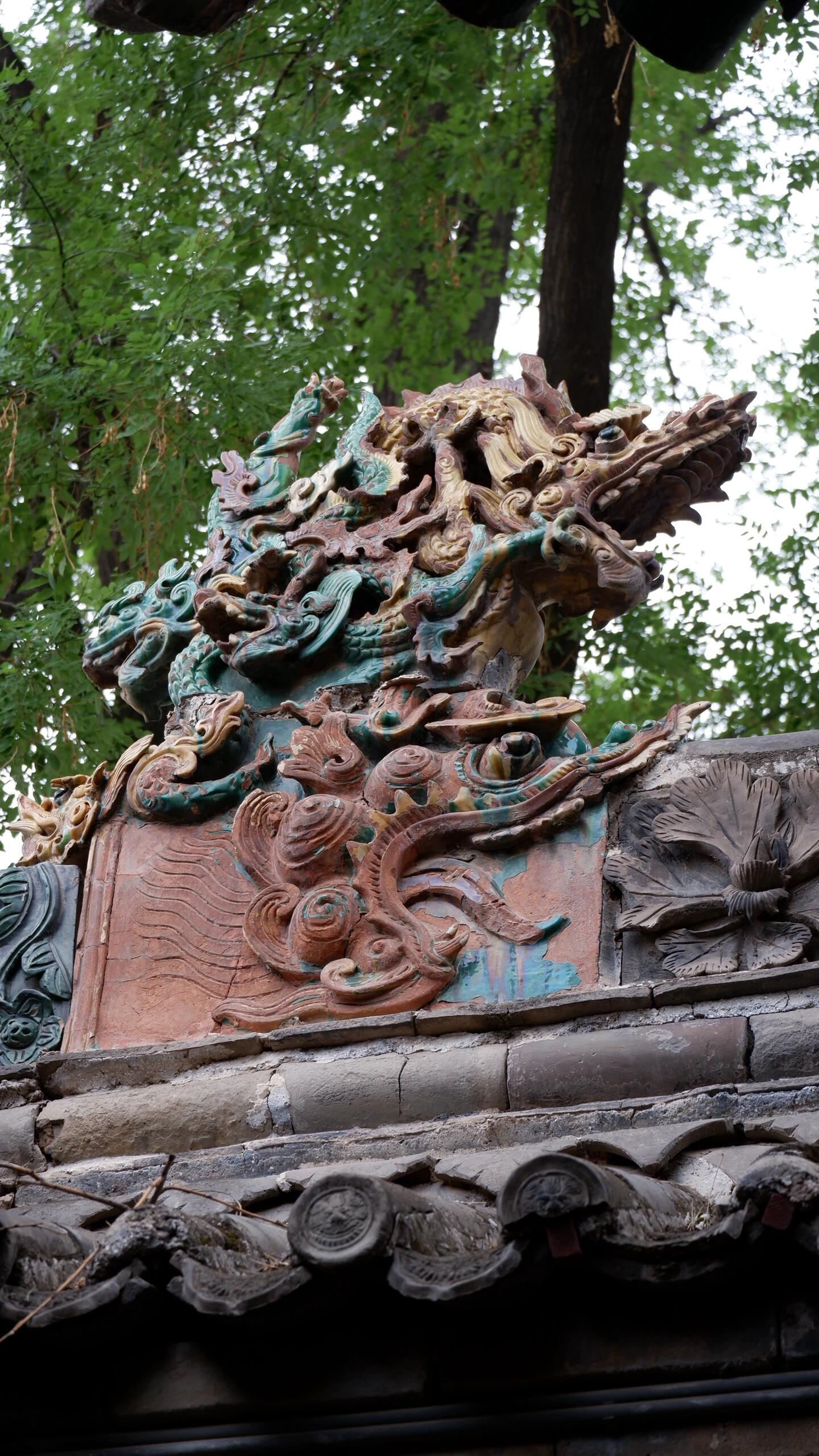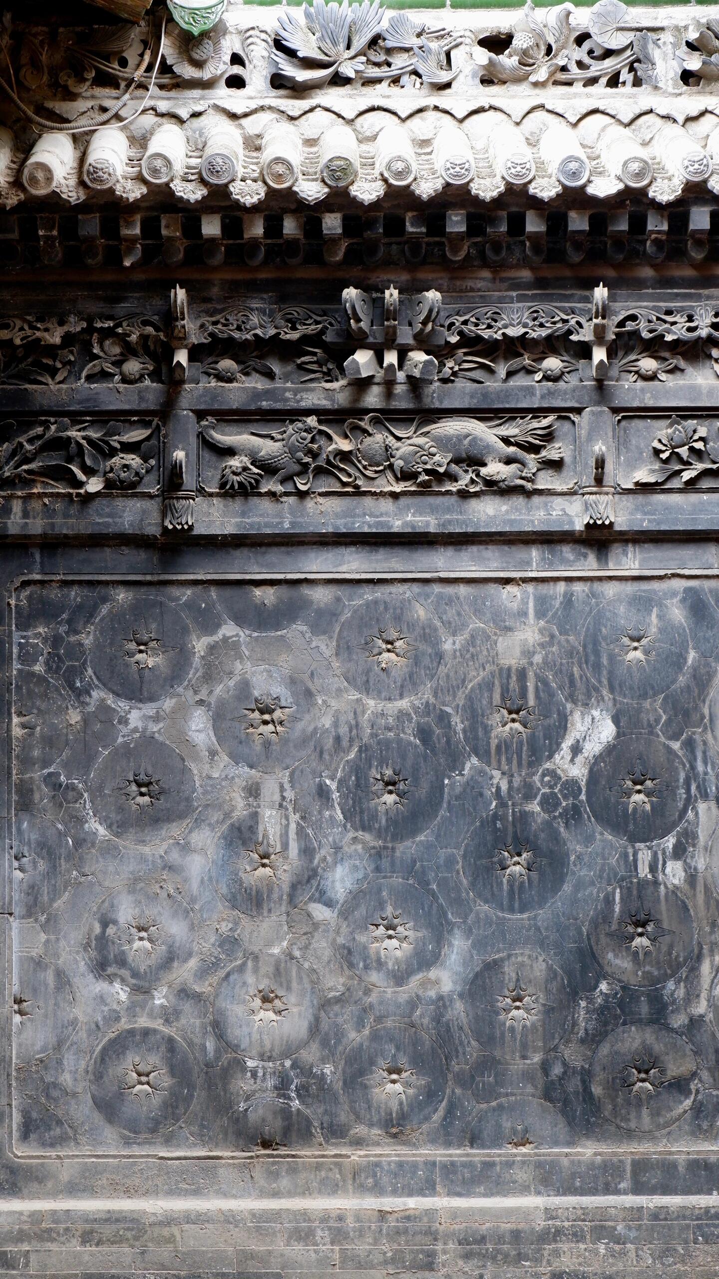 踏入三原城隍庙,首先映入眼帘的是砖雕照壁。照壁上的图案雕刻精细入微,每一处线条都流畅自然,仿佛是工匠们用刻刀在砖石上精心描绘的画卷。花鸟鱼虫、人物故事栩栩如生,仿佛下一秒就会从壁上跃出,让人不禁驻足凝视,感叹古代工匠的精湛技艺。穿过照壁,一座木牌楼巍然耸立,木牌楼的木料纹理清晰,雕刻的花纹繁复精美,既有传统的吉祥图案,又有生动的历史场景,每一个细节都彰显着古代建筑艺术的魅力。