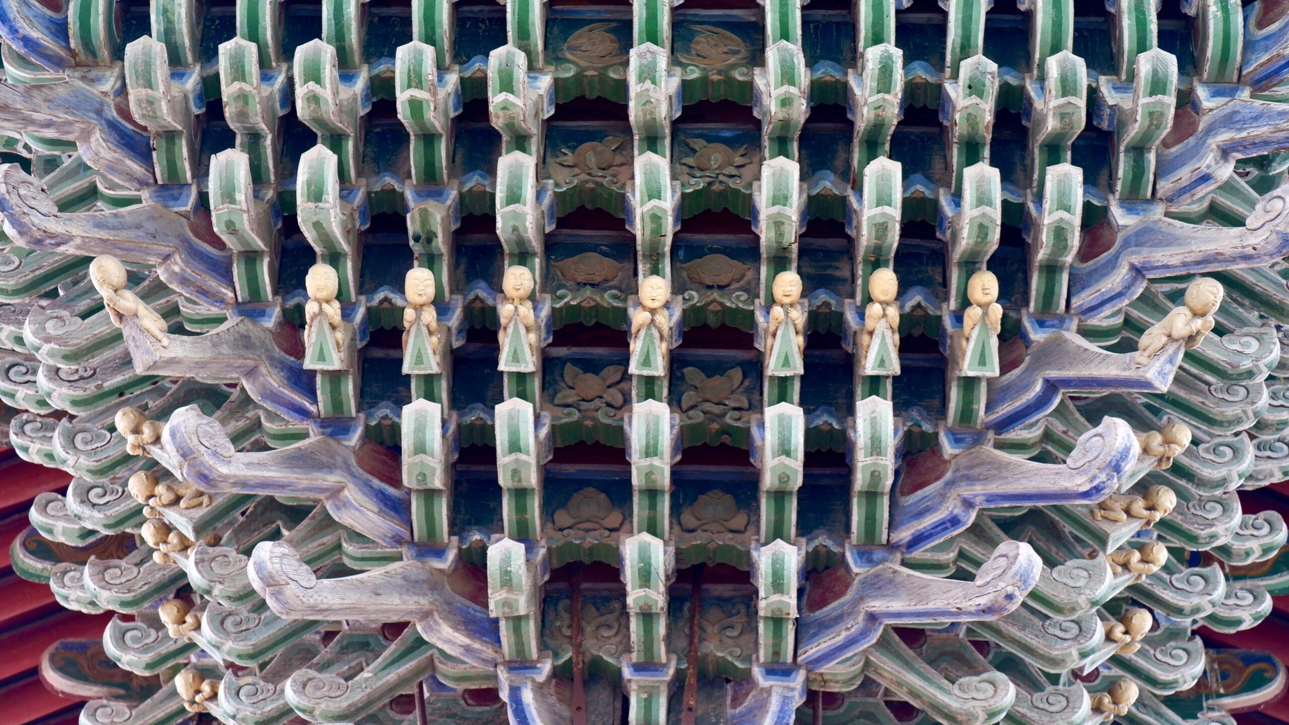三原城隍庙的色彩运用也是其一大特色。主建筑多用强烈的原色,青白色的石质台基和栏杆,给人一种清新、素雅的感觉,同时又显得庄重、稳固;朱红色的屋身,鲜艳夺目,充满了活力和热情,象征着吉祥和富贵;檐下涂以青绿的冷色,与朱红色的屋身形成鲜明的对比,增添了建筑的层次感和立体感;屋顶的黄色和绿色琉璃瓦,色彩鲜艳,在阳光下熠熠生辉,使整个建筑群显得更加辉煌壮丽。这些对比鲜明的色彩相互搭配,既符合中国传统建筑的审美观念,又展现出独特的艺术魅力。