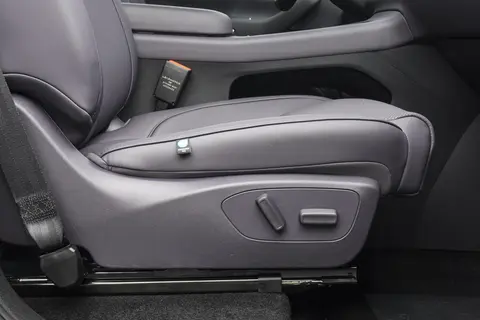 座椅是仿皮材质,178cm 的我坐前排,坐垫能顶到膝窝,包裹性不错;后排坐垫长度 500mm,孩子坐久了不会滑下去,不过靠背角度没法调,长途乘坐可能会有点累。后排独立空调出风口和 USB 接口都是标配,给平板充电、调温度都方便。