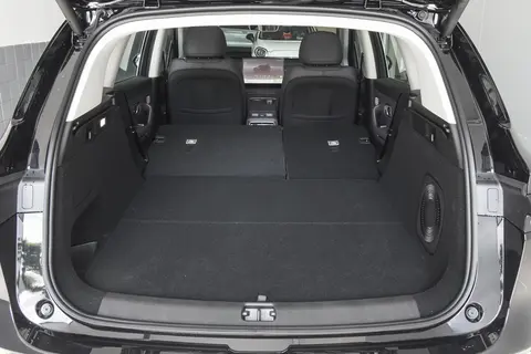后备箱常规容积 510L,放下婴儿车 + 折叠推车没问题。上次帮朋友搬婴儿床,放倒后排座椅后扩展到 1280L,直接塞进去还剩空隙。后备箱地板下面有隐藏储物格,能放充电枪、应急工具,东西不会乱糟糟的。