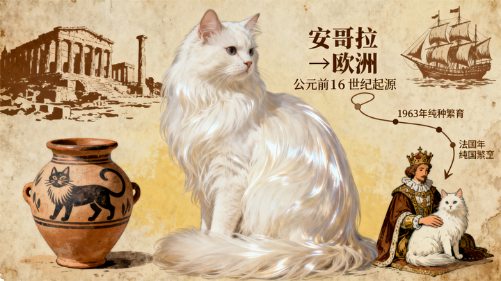 土耳其安哥拉猫作为 “Natural Semi-long”(自然半长毛猫)的典范,是现存最古老的长毛猫品种之一,其起源可追溯至公元前 16 世纪的土耳其安卡拉地区(古称安哥拉),由当地原生猫自然演化而成,未经过度人工选育。考古发现,安卡拉古城遗址中曾出土绘有类似长毛猫形象的陶器,证实其与人类相伴已逾千年。