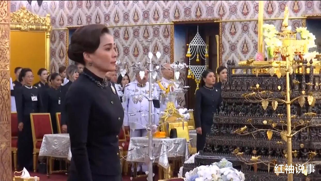 葬礼现场那叫一个庄严肃穆,女眷们清一色黑色礼服,都来送诗丽吉太后最后一程。没想到诗妮娜成了最大惊喜,大老远从德国赶回来啦!再瞧瞧座位安排,诗妮娜居然和提帮功坐一块儿,而苏提达则紧紧挨着泰王坐。这嫡庶之间的差别,一眼就看出来咯,感觉现场气氛都因为这座位的事儿,多了几分微妙呢!