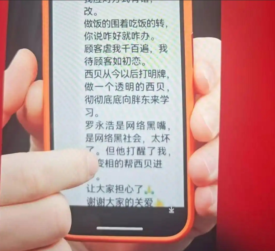 13日,罗永浩再次连续发文回应此事。他说:经过整整一天全国媒体密集地揭露西贝厨房内幕后,看看这几句:“这不是危机公关,因为根本就没有危机”?“硬杠网络黑嘴”?我隐隐地感觉到贾老板和贾老板的朋友们,是真心想把西贝搞死。