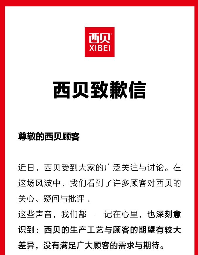 五是道歉信缺乏专业性。这封道歉信,可以理解为一次情况通报。那么按照体例,应该包括三个方面,即陈述事实、回应关切、表明态度。但这封信里,上来就是道歉,如果不了解该事件的网友会看得一头雾水,你道哪门子歉啊,西贝哪里做错了?只字没提。这就是缺少陈述事实的部分;回应关切,应该是就大家最关心的几个点加以说明,比如保质期的问题、菜品贵的问题等,这些都没有说;表明态度则是请大家监督整改效果,而不是用“虐”这样的字眼来刺激消费者。
