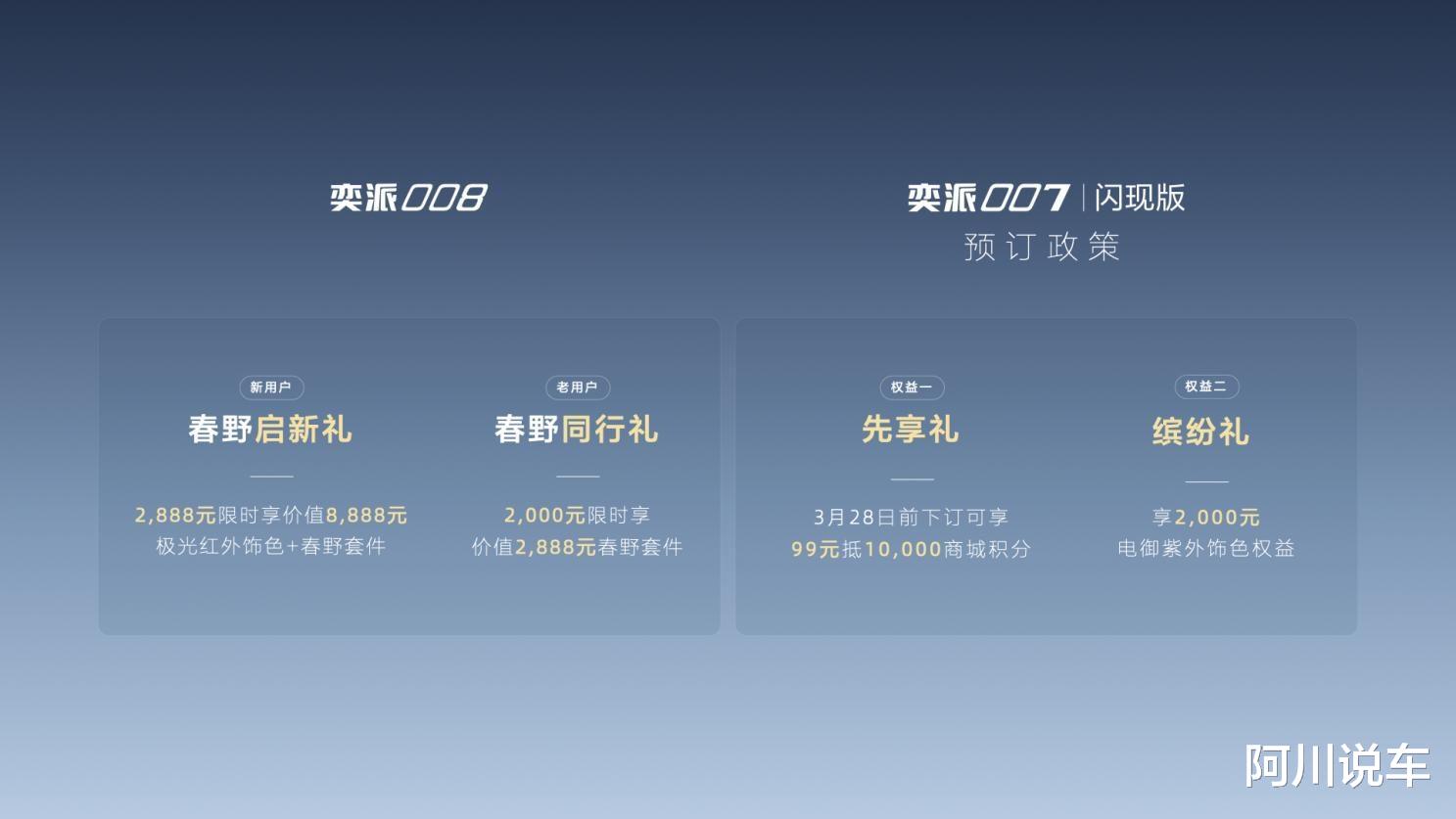 奕派007闪现版长宽高升级为4890*1915*1476mm,加之2915mm超长轴距,进一步强化宽体低趴的视觉效果。外观上,新车采用棱光设计美学,通过强化光影的穿梭感,加之一体式运动套件搭配猎装顶翼,气场拉满。内饰则推出专属星环雾蓝限定配色,结合中式对称美学设计,营造出媲美30万级豪华品牌的内饰质感。性能上,奕派007闪现版传承ETCR赛道技术基因,搭载冠军团队专业底盘调校,能够适应多种复杂路况,操控和舒适双在线。智能方面,新车搭载双AI大模型智能语音助手、SOA智能座舱等配置,以冠军品质与前沿科技,刷新细分市场价值新标杆。在3月28日前下订,还可享受99元抵10000商城积分的“先享礼”和价值2000元“电御紫”外饰色权益的“缤纷礼”。