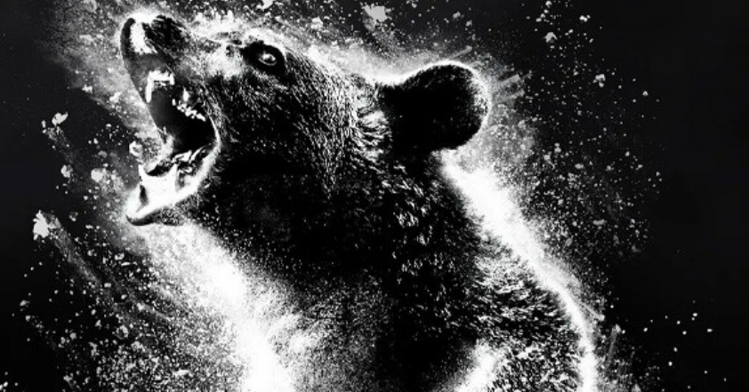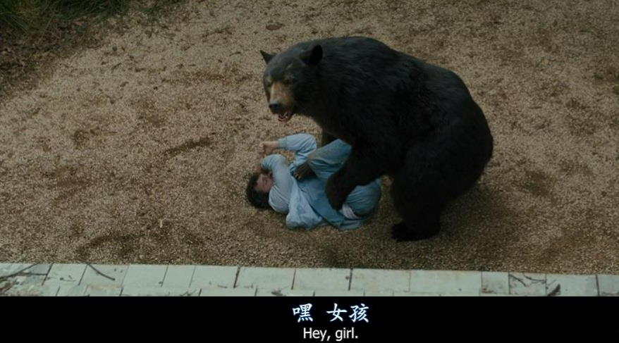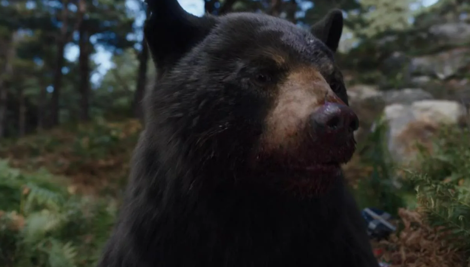 这部电影的核心是一头不小心吃了DP而变得嗜血和残暴的熊,光是这个设置就已经很吸引人了,它既有怪兽电影中的惊悚和紧张,又融入了犯罪片中的阴暗和复杂。这头熊不再是森林中温和的巨兽,而是变成了一个无法控制、充满暴力的怪物。它的变化不但对人类角色构成了威胁,也给整个故事增添了一种不可预测的紧张感。