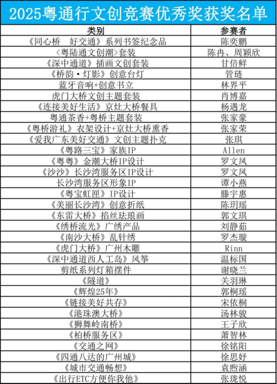 在广东交通集团成立25周年之际,广东交通集团所属广东联合电子服务股份有限公司依托“粤通行”平台,发起“爱我广东·美好交通”文创设计竞赛,旨在深挖岭南文化基因,以“交通延伸美好生活”为价值内核,邀请社会各界用创意诠释广东交通的时代风采。