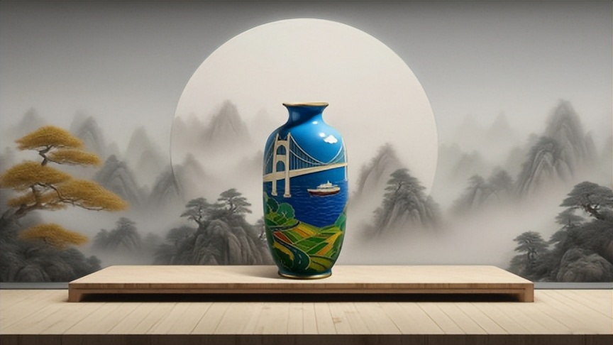 设计理念:以掐丝珐琅梅瓶为载体,融大桥及周边景致,借传统工艺展广东桥梁成就与地域风韵。