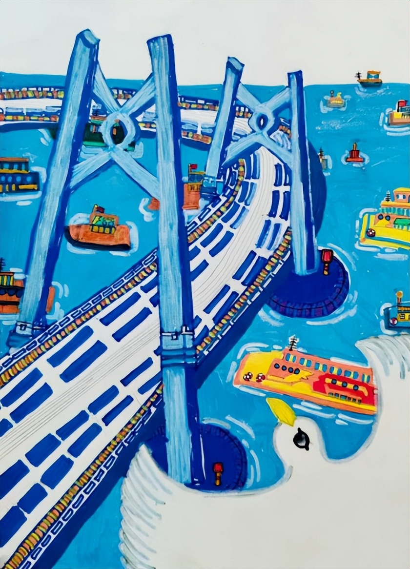 设计理念:大海上的桥梁连通对岸,既便利出行又不影响船只通航,尽显祖国强大技术能力,让人满心自豪。