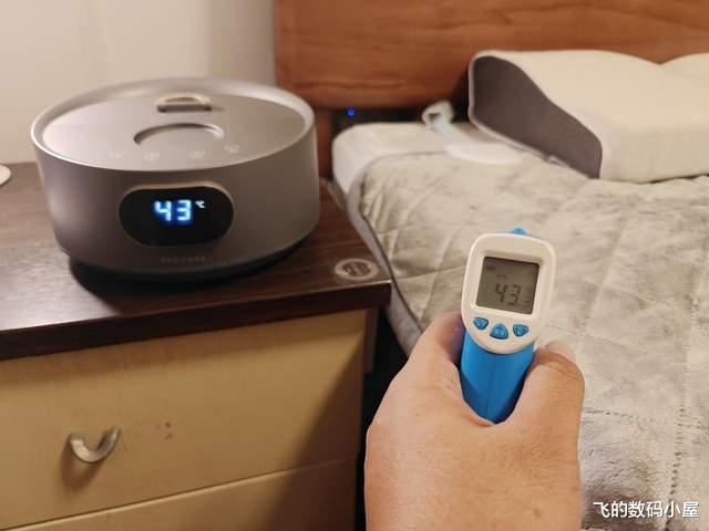 3-5分钟再用红外温度检测仪测量温度为43.3,可见水暖毯的升温速度还是非常快的。