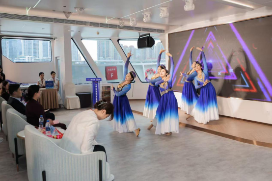 推介会尾声,当熟悉的麦西来普旋律再次在甲板上响起,游客们一边欣赏浦江两岸的秀丽风光,一边随着欢快的节奏翩翩起舞。上海——海上丝绸之路的重要节点,乌鲁木齐——陆上丝绸之路的核心城市,两座城市在文化差异的碰撞中激发出奇妙的化学反应,让在场的每一位游客通过新疆歌舞实现了共鸣与共情。